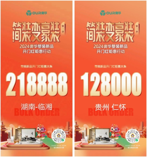 奧華“簡裝變豪裝”2024整裝新品開門紅鉅惠行動開始即迎開門紅。市場捷報頻傳,消費者熱情高漲,奧華新整裝套餐飽受好評,深受消費者喜愛,大額訂單不斷!